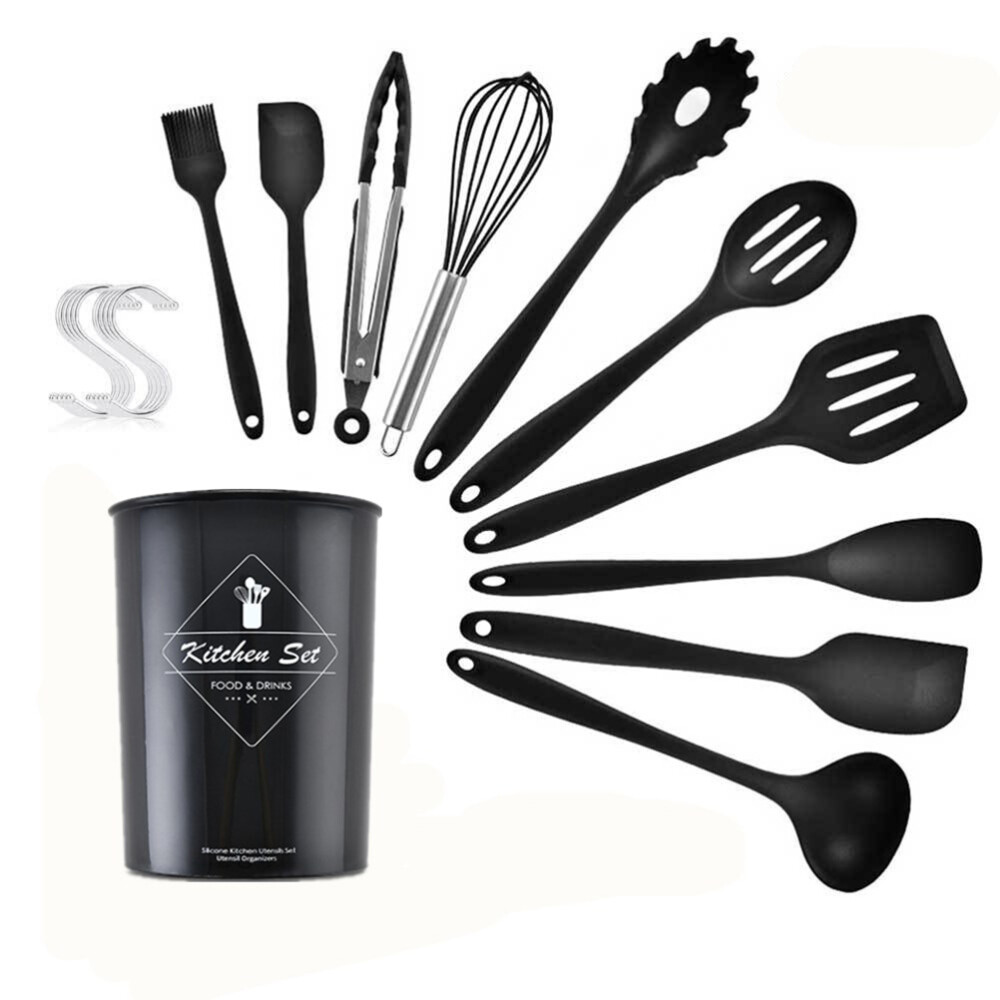 The kitchen tools included in this set are the following Wusthof five piece kitchen tool set. This set includes a slotted spoon, solid sturdy turner, flexible slotted turner, large ladle and stainless steel canister to display the collection and save room. These kitchen utensils are top quality, just like i remembered growing up as a kid. This set brings all the needed and useful tools together in one complete package.